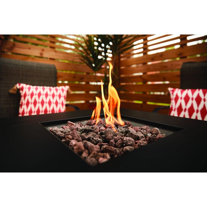 - Decorative glass beads and PVC protective cover for fire pit included
