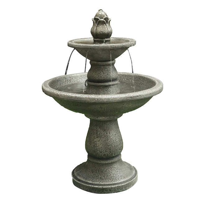 Enjoy the soothing sounds of the water with this lovely pedestal fountain by Infinity. Crafted and painted by hand, the 2-tier circular fountain will be a beautiful addition to your outdoor space.