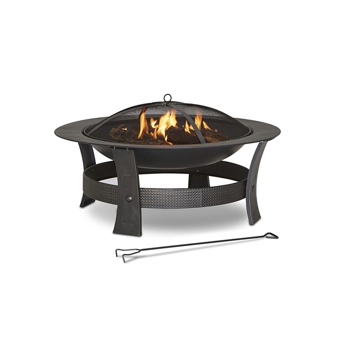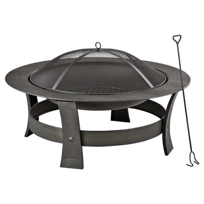 Organize your gatherings around this outdoor wood fireplace for relaxing and warm evenings. It features a decorative rim to add charm to your garden and rigid legs that provide stability during use. Its cover is made of a dome-shaped screen and treated with paint resistant to high temperatures to protect sparks and embers. The fire grid, the cover and the handling tool are included in the packaging. This product is covered by a 1-year limited warranty.
