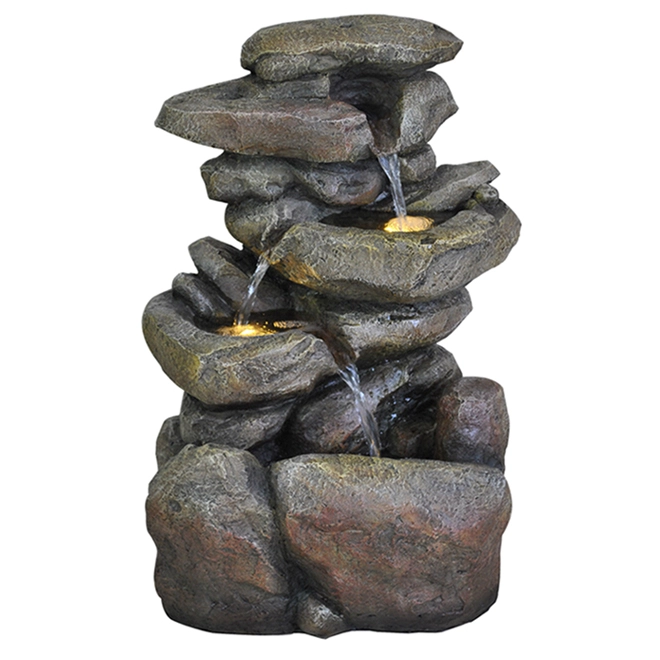 Create a cozy and soothing atmosphere with this beautiful outdoor decoration from Style Selections. The water trickles down the fountain while LED lights illuminate the rocks with a mesmerizing glow. This 20-inch rock waterfall is made of fibreglass.