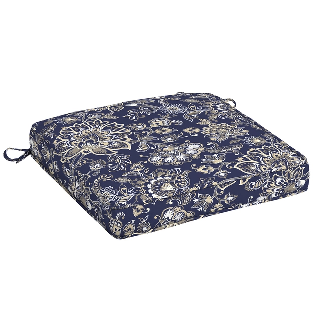 Designed to fit most dining and traditional patio chairs, this Style Selections premium seat pad is made of UV-resistant polyester fabric and is filled with everLuxe, a superior poly fill that helps it retain its shape. Featuring a navy colour with a gorgeous floral design, it will be a beautiful addition to your outdoor space.