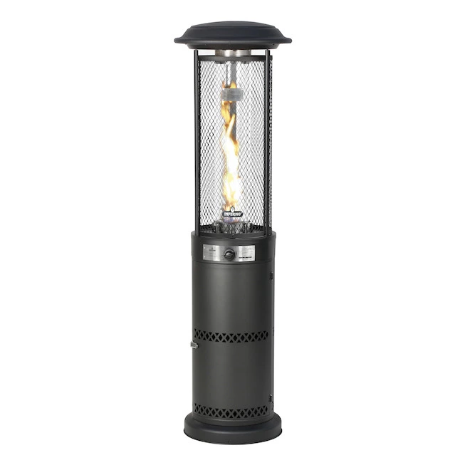 Enjoy your terrasse or patio even in cold temperatures thanks to this Style Selections patio heater. Using propane gas, it generates 36,000 BTU and covers an area of up to 400 sq.ft. In addition, the central flame and cylindrical design of this device allow for an evenly distributed heat. The protective screen prevents contact with the heating cylinder. This patio heater is perfect for both residential and commercial use. Propane tank not included. Backed by a 1-year warranty.