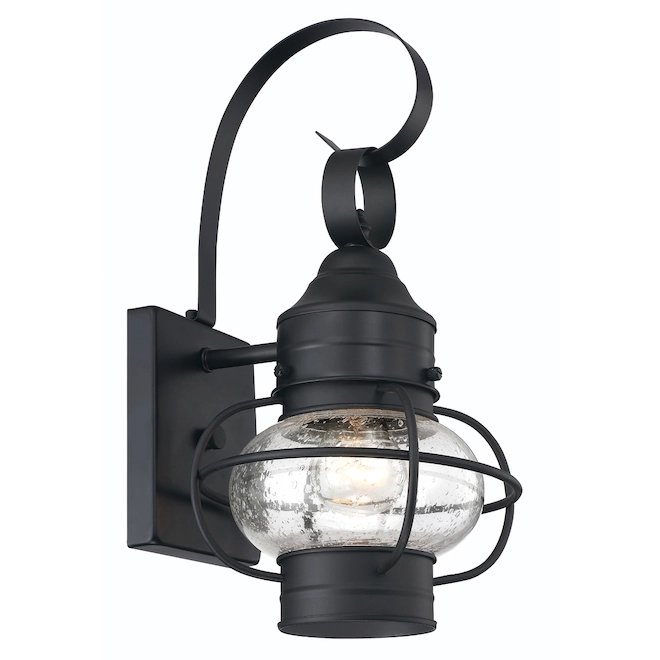 This black steel fixture with seeded glass is weather-resistant and sturdy. It requires a 100-watt medium base incandescent bulb (not included). This lantern design offers a traditional look and is ideal for entranceway lighting. Also, the hardware included for easy setup.